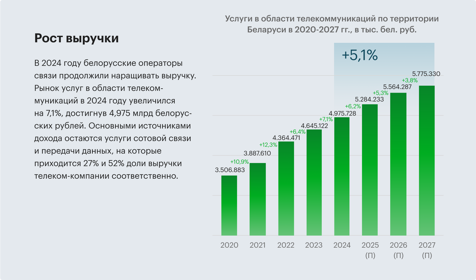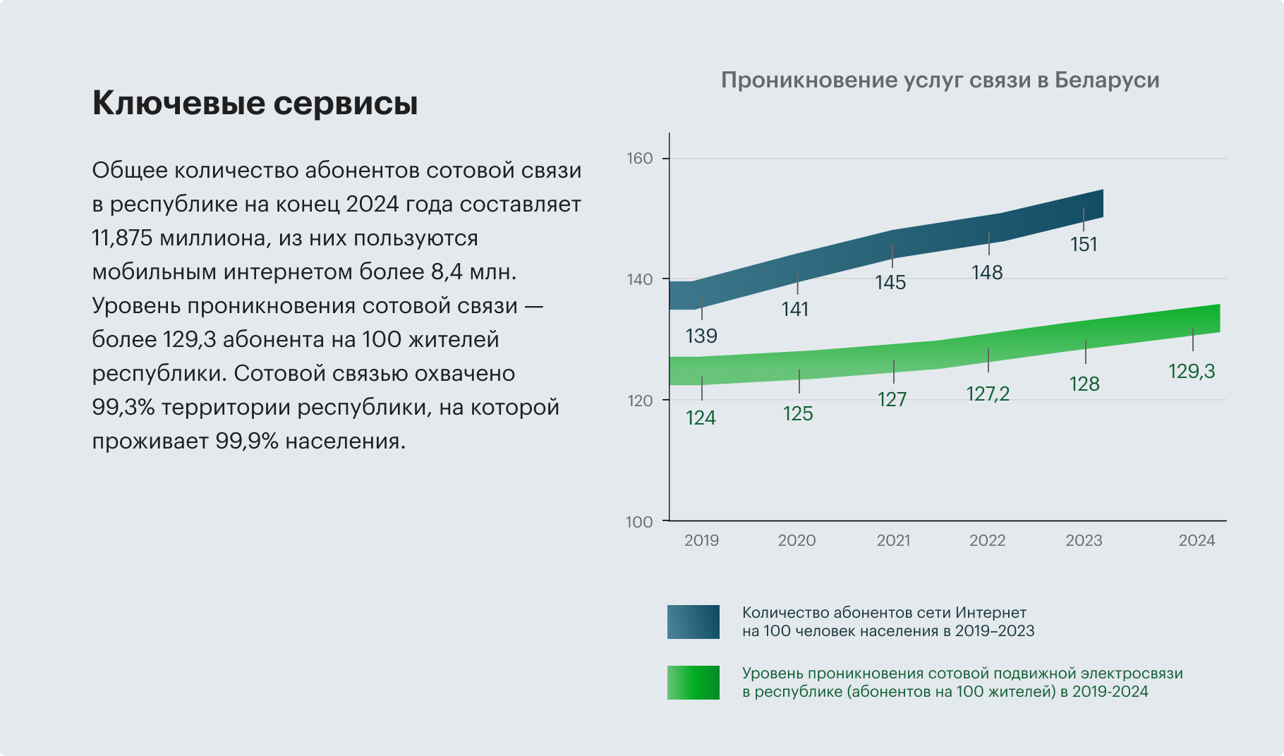 Телекоммуникационный рынок Беларуси демонстрирует стабильное развитие, характеризующееся улучшением качества услуг связи, расширением сетей LTE, ростом цифровых услуг и подготовкой