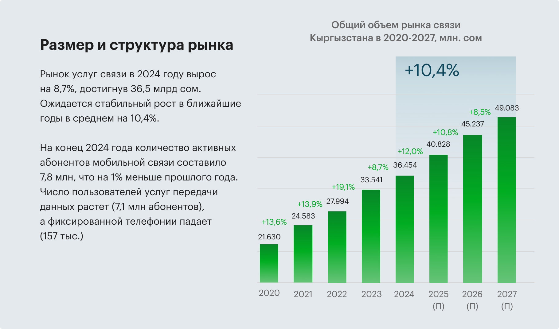 Телекоммуникационный рынок Кыргызской Республики демонстрирует устойчивый рост, обусловленный увеличением числа пользователей мобильной связи и интернета.