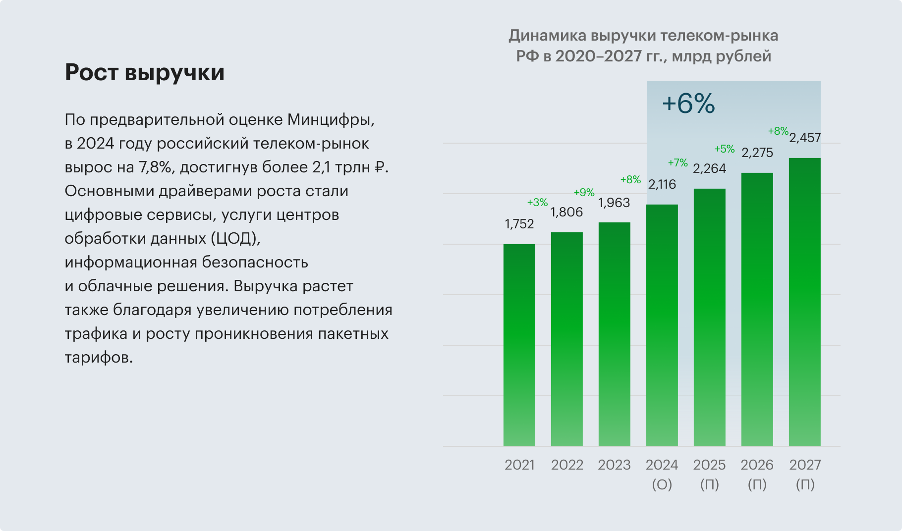 Российский телекоммуникационный рынок продолжает демонстрировать устойчивый рост, обусловленный развитием цифровых сервисов, внедрением новых технологий и адаптацией к изменяющимся экономическим условиям