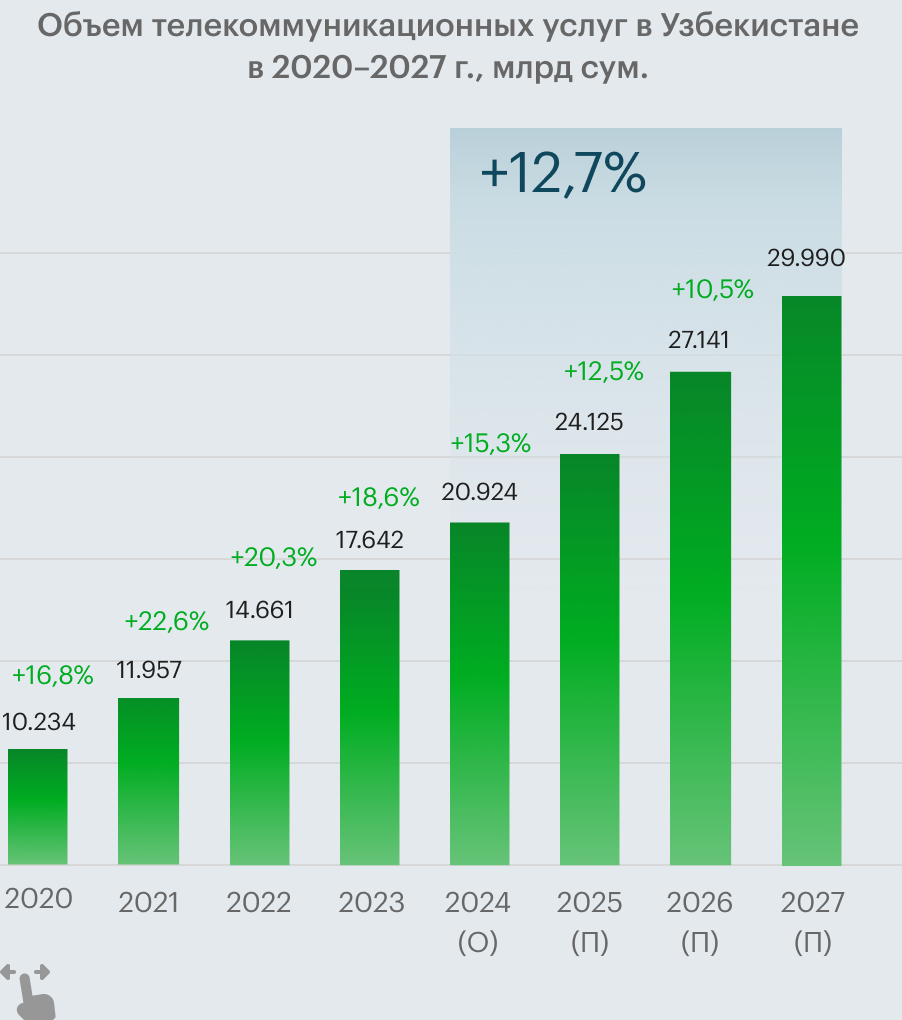 В 2023 году правительством была принята Стратегия «Узбекистан 2030». Одна из целей в рамках стратегии – превращение страны в региональный ИТ-хаб путем развития цифровых технологий. Согласно документу, операторам необходимо обеспечить интернетом все населенные пункты страны и повысить его скорость в 10 раз. Охват оптико-волоконными линиями связи и ШПД должен быть доведен до 100%, все автотрассы магистрального значения должны быть обеспечены мобильным интернетом. При этом сетями 5G к 2030 году должны быть покрыты Ташкент, Республика Каракалпакстан и областные центры.